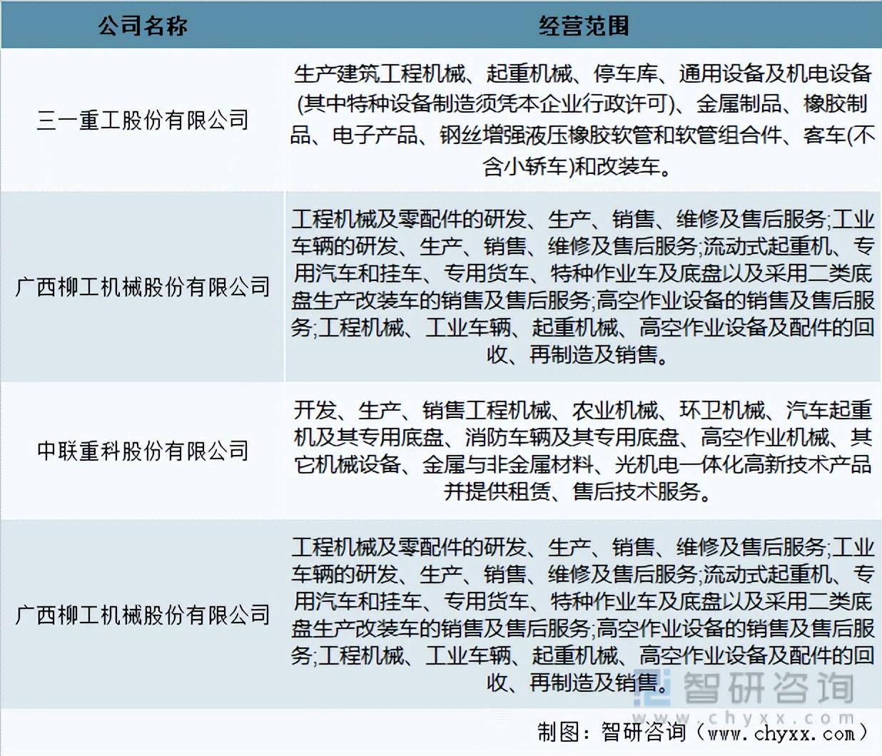 中国工程机械行业企业分别为徐工集团、三一重工、中联重科、柳工机械、铁建重工集团、龙工、山河智能、山推股份、雷沃工程机械集团、厦工机械、北方股份等。