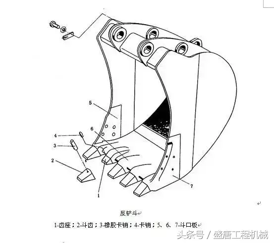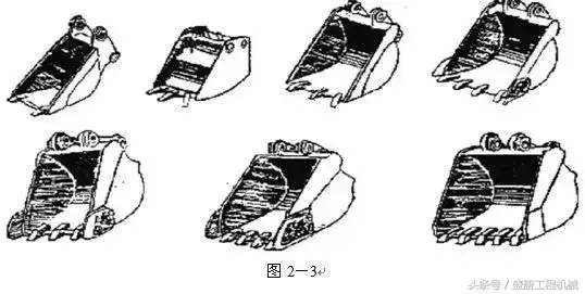 1.2.2结构反铲用的铲斗形状尺寸与其作业对象有很大关系。 为了满足各种挖掘机作业的需要,在同一台挖掘机上可以配置多种形式的铲斗,图2-3、图2-4分别为反用铲斗的基本形式和常用形式铲斗的斗齿采用装配式,其形式有橡胶卡销式和螺连接式。