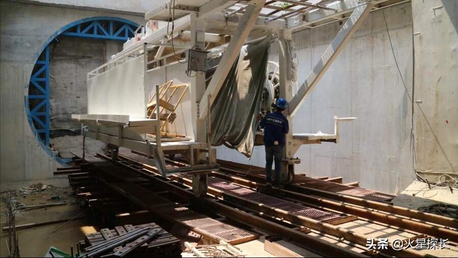 第三步:在井中安放盾构机始发机架,然后再固定一个巨大的反力钢架,以顶住盾构机,使其能够向前推进。