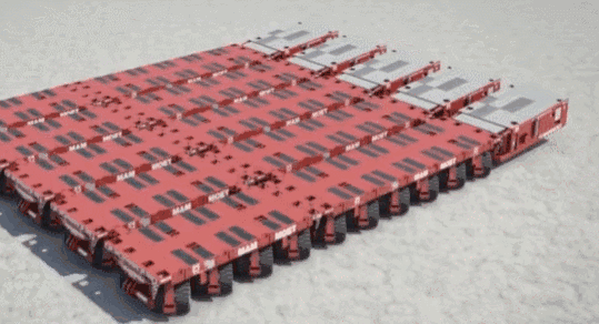 所以想要运输超大超重的物件,只要把这些平板全部组合 起来,听起来似乎并没有多少科技水平。但是难就难在控制和动力系统上面。