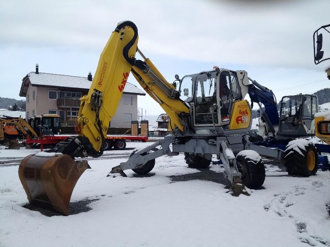 挖掘机在基建工程中的地位不可撼动,人们对挖掘机的印象就是价格贵,号称工地中行走的法拉利,一辆挖掘机动辄要几百万元,再就是有一对很宽的履带,只要看到就能让人联想到坦克,但其实挖掘机的行走装置至少有3种,分别是履带式,半履带式和轮胎是,不过德国造出的挖掘机算是另类,虽然都是轮子,但是这种挖掘机可以上下随意摇摆。