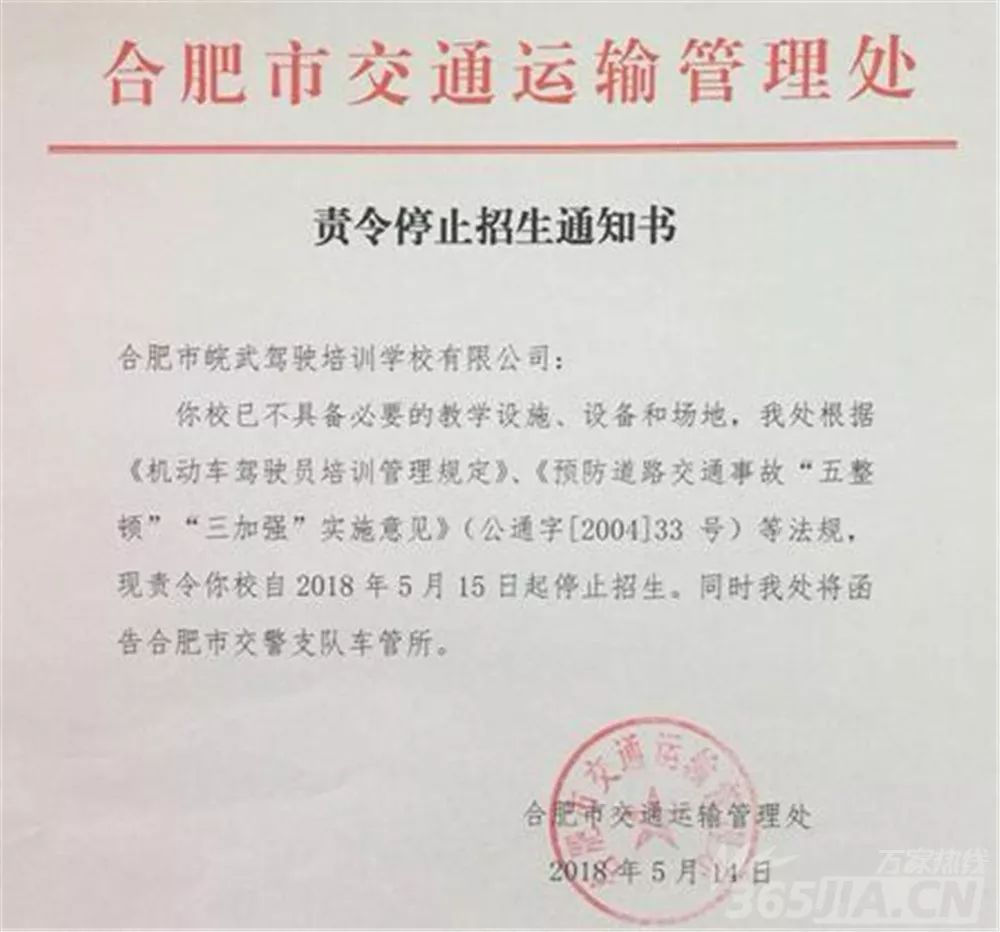 而早在今年3月21日,合肥市经济技术开发区建设发展局和城市管理局就已正式下文给土地的所有者:合肥中建工程机械有限责任公司,责令其在4月30日之前清理违规驾校。那么为什么一直到撤场前,路路通驾校还一直在招生呢?