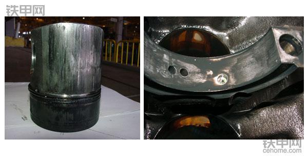 此缸套与活塞因过热而损坏,原因 1、机油中混有水或长期使用,粘度下降。2、机油中混入灰尘杂质,喷嘴堵塞,油压下降。