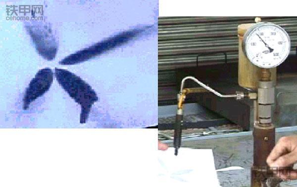 此喷嘴的一个小孔己经被碳粒堵塞,喷射花形残缺不全