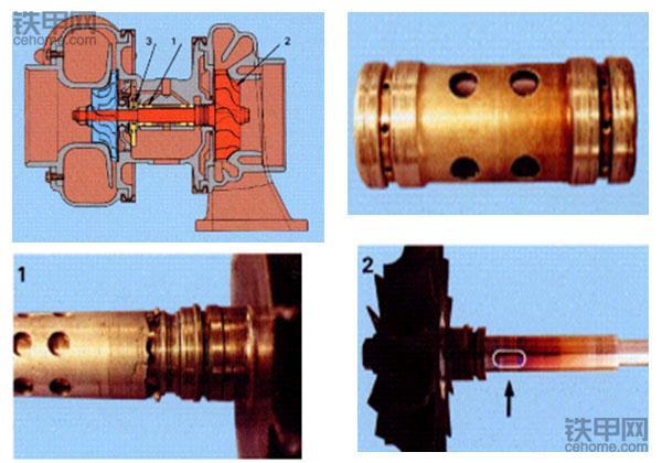 滑动轴承由于缺乏润滑而划伤,且摩损过度;滑动轴承由于缺乏润滑而咬合、破裂;涡轮轴由于缺乏润滑而热变色,可见明显蓝色