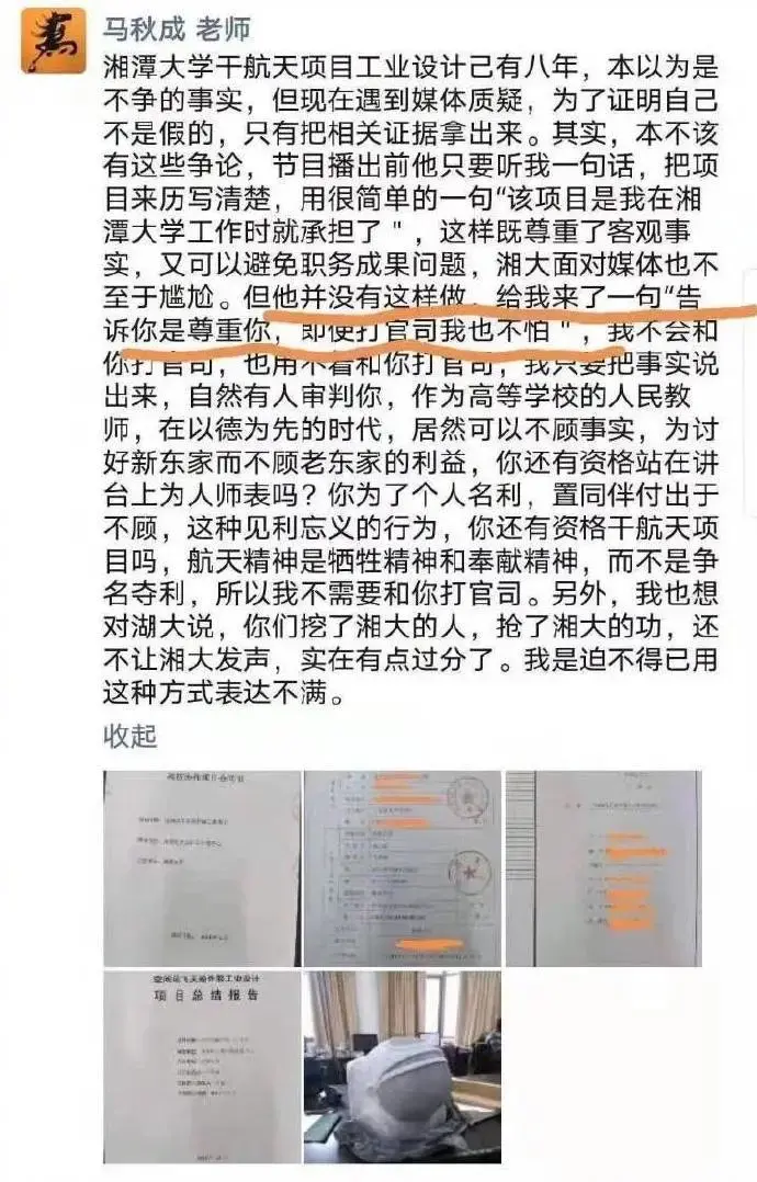 庆幸的是,在这一场闹剧中,湘大牌面机械工程学院教授老马第一个站了出来。