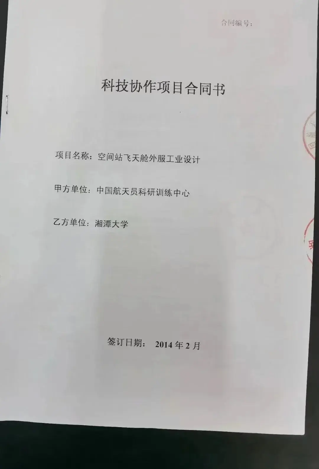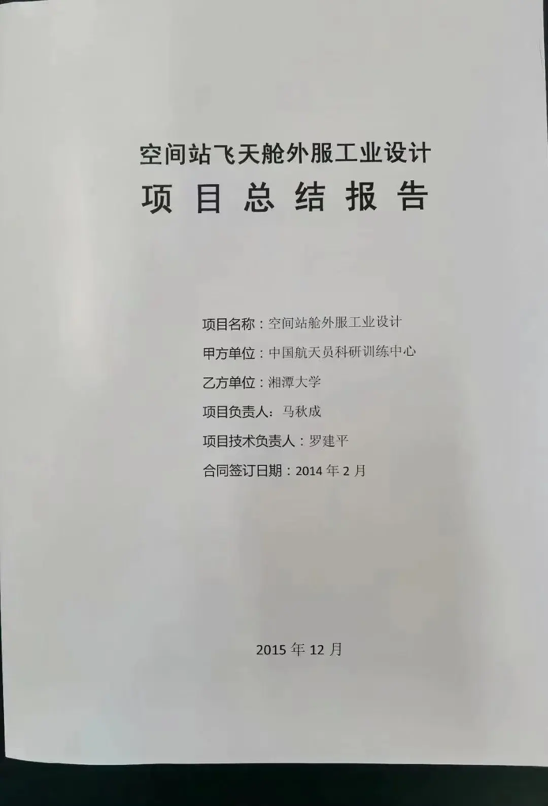 用老马自己的话来说,湘大机械设计学院在2013年12月26日中标空间站“飞天”舱外工作服工业设计项目,在院系老师和学生的共同努力下,舱外服项目于2014年完成中期评审。2015年12月,在北京召开了项目总结验收会,并于2016年正式进入样机制造、调试、改进及验证阶段。