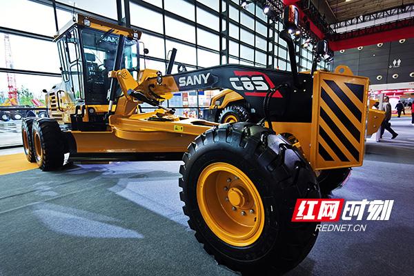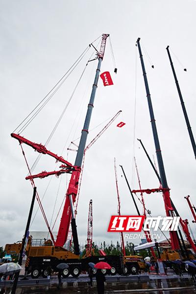 在外场,全长沙展最大、最高、最霸气的一台设备——1600吨全路面起重机的红色臂架直入云霄,以“领头大哥”的气质和绝对的竞争优势,撑起中国制造的高端形象。