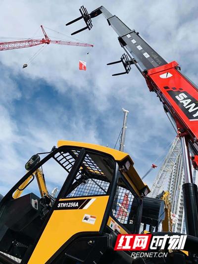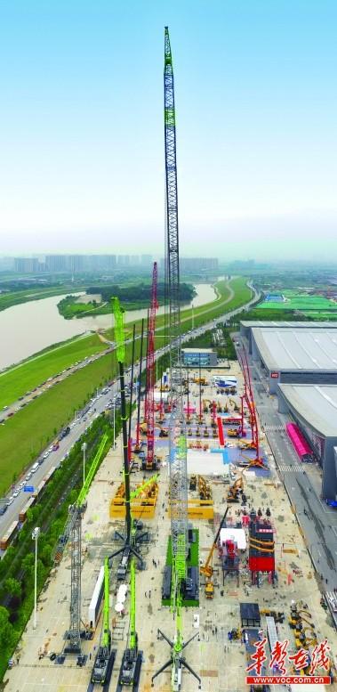 “运送这台设备,平板车用了38台,从长沙麓谷高新区到展馆,一路‘回头率’超高。”中联重科布展工作人员介绍,这个“老大”必须最先进场,要不然到后面进场就进不来了,它也是本次展会最先入驻场馆的展品。