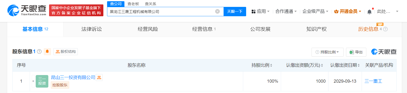 每经AI快讯,天眼查App显示,近日,黑龙江三晟工程机械有限公司成立,法定代表人为贺鑫,注册资本1000万元,经营范围含建设工程施工、建筑劳务分包、保险代理业务、建设工程设计、道路货物运输、机械设备销售、建筑工程用机械销售、机械设备租赁等。股东信息显示,该公司由三一重工旗下昆山三一投资有限公司全资持股。