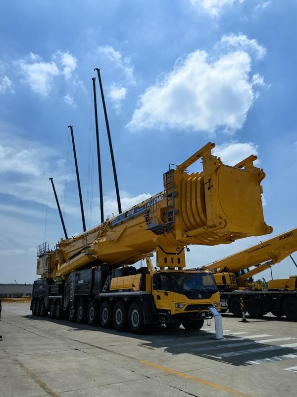 记者看到,在装配一分厂数字化底盘柔性装配线上,25分钟就能下线一台产品,市场上有50%的起重机从这里产出;在起重机产品调试场,4000吨轮式起重机长29.7米,高7.3米,能在170米的高度吊起230吨的重量。