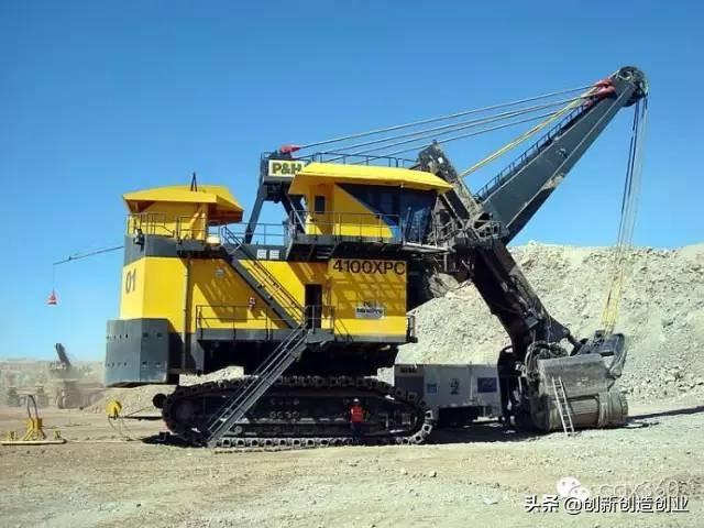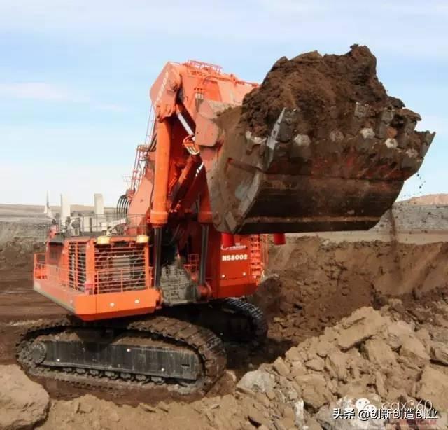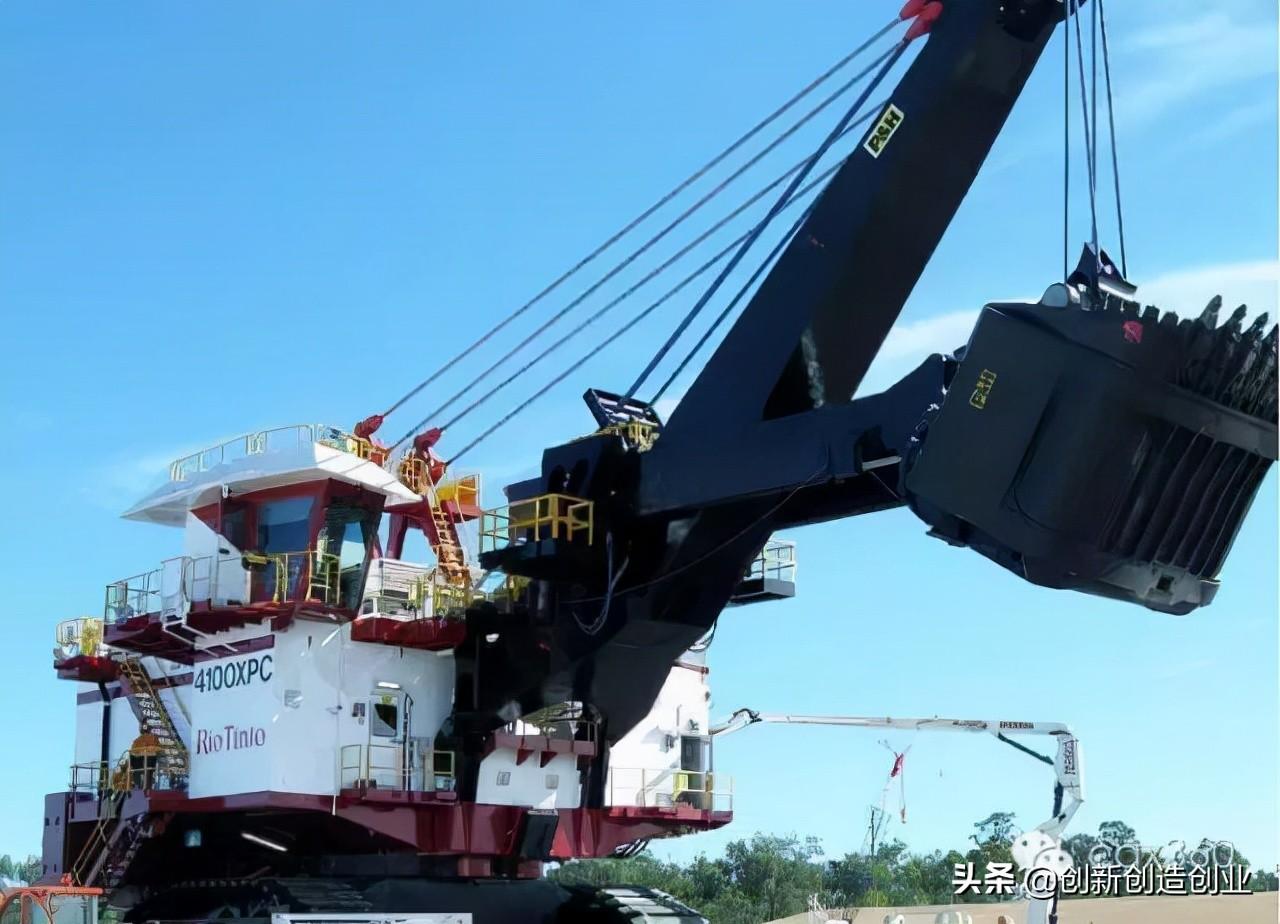 Liebherr(利勃海尔) R9800工作重量为正铲810吨,反铲800吨,总功率可达2×1492kW ,铲斗容量正铲/反铲均为42立方米。