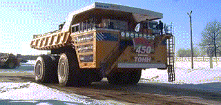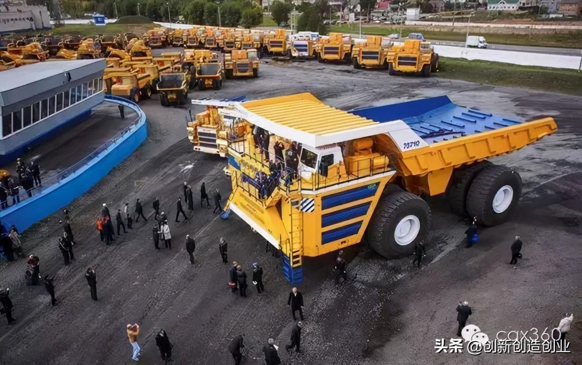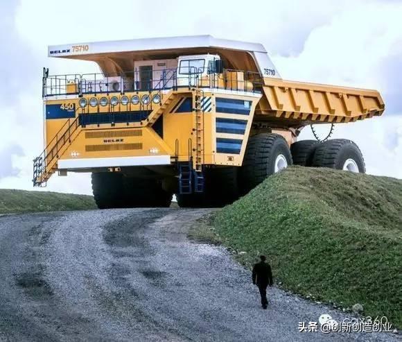白俄罗斯著名的矿山卡车制造商别拉斯(BELAZ)推出世界上最大的自卸车——别拉斯75710,车身高8.16米,宽9.87米,长20.60米,自重360吨,载重可达惊人的450吨。