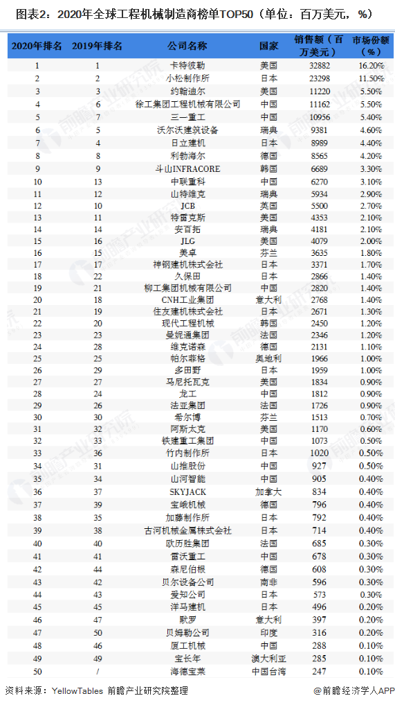 从需求端来看,近年来全球工程机械制造行业呈现整体上升趋势;其次,行业呈现集中化趋势,不管是从地区竞争角度还是企业竞争角度。
