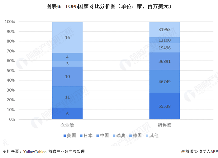 从产业区域来看,中国、日本和美国依旧占据第一梯队的位置,而西欧像是德国、瑞典和法国则稍微弱势一点,但仍远远超过其他国家。