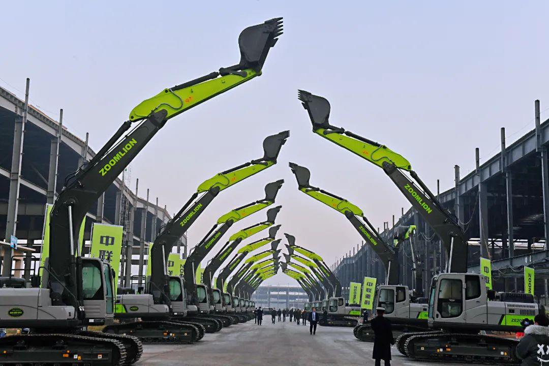 高新区中联智慧产业城挖掘机械园区完成中大挖装配线安装调试,顺利下线首台挖掘机械。来源:视觉中国