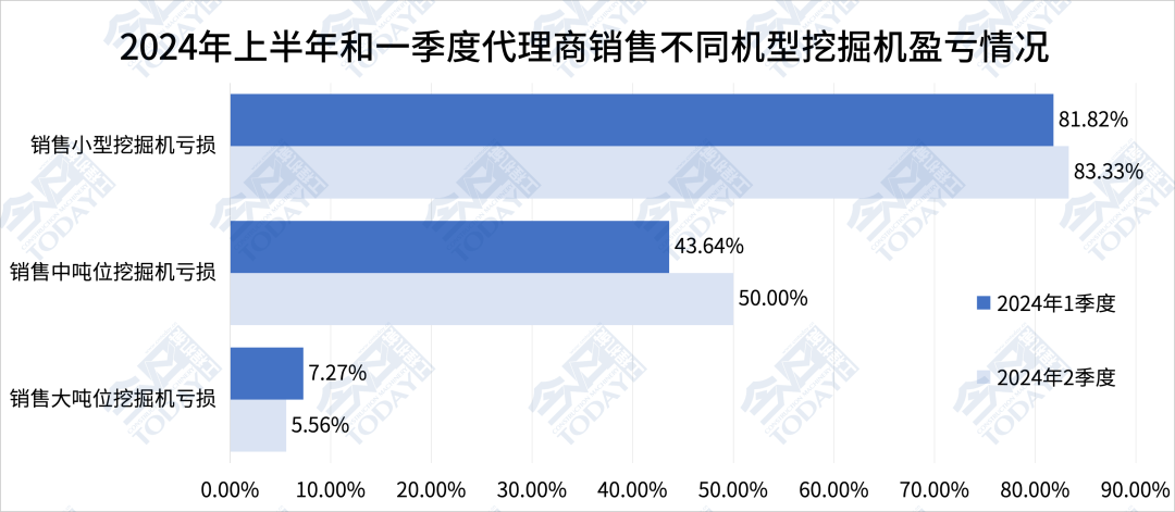 图 3 2024年上半年和2024年一季度中国工程机械代理商销售不同机型挖掘机亏损情况对比