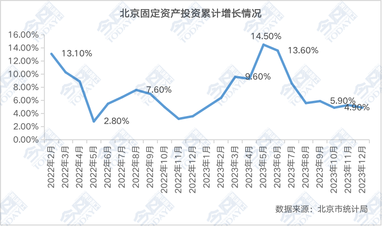2022年以来北京地区固定资产投资累计同比增长情况(%)