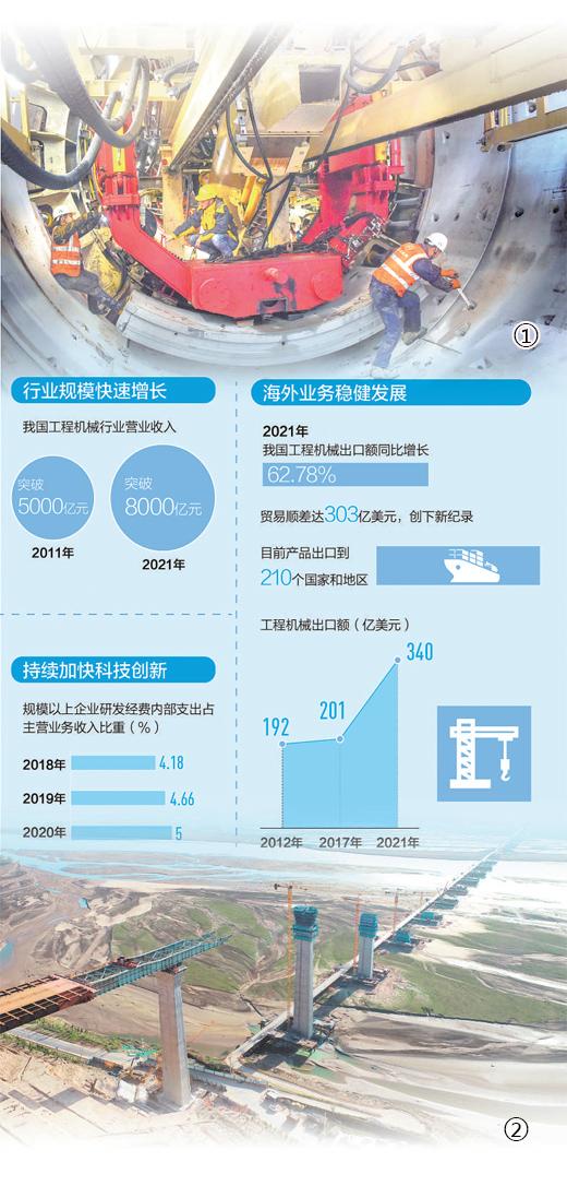 十年间,中国工程机械制造业快速崛起,成为全球最大的制造基地。2021年,全球工程机械企业10强,中国拥有3席,总数位列第一。业内人士认为,中国工程机械行业已在世界工程机械产业格局中占据重要地位。