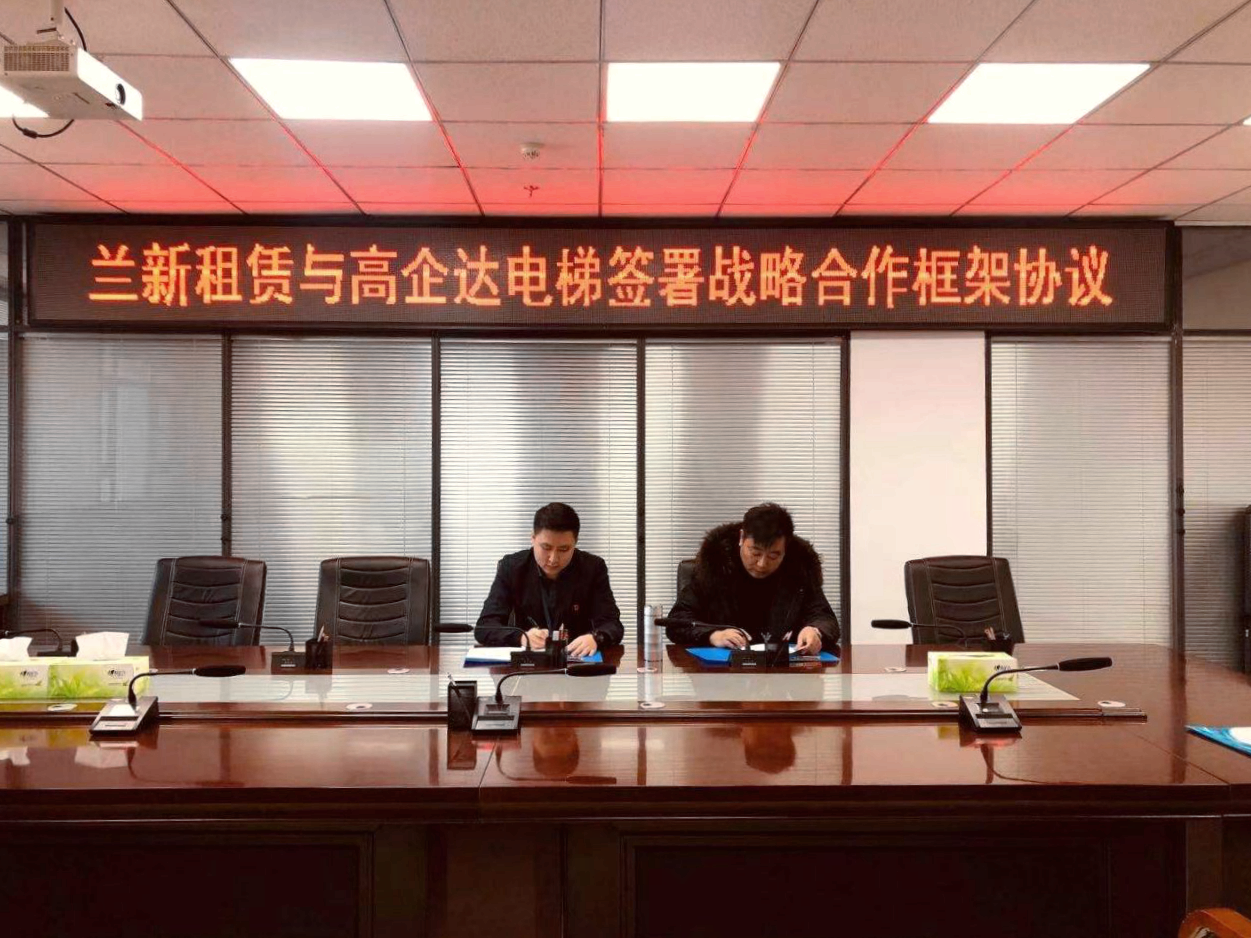 近日,兰州新区金控集团融资租赁公司(以下简称“兰新租赁”)与高企达电梯(江苏)有限公司(以下简称“高企达电梯”)就开拓甘肃省建筑机械设备市场签订《战略合作框架协议》,确定了双方的权利和义务,双方将在市场开拓、线上线下营销、设备融资租赁等领域展开合作。