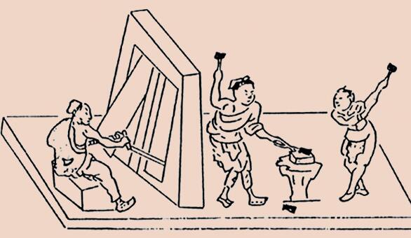 在金属冶炼中,为了使燃料充分燃烧,以提高炉温,一般都装设有鼓风机械。最早的鼓风器称为橐 ,是一种皮囊。把多个橐排在一起称排橐,用马力、人力、水力推动就称马排、人排、水排。水排 是东汉时南阳太守杜诗于公元31年发明的,用于鼓铸农器,收到了“用力少,见功多,百姓便之”的效果。