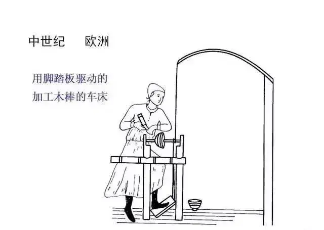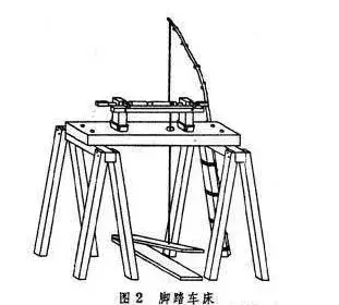 用脚踏板驱动的 加工木棒的车床