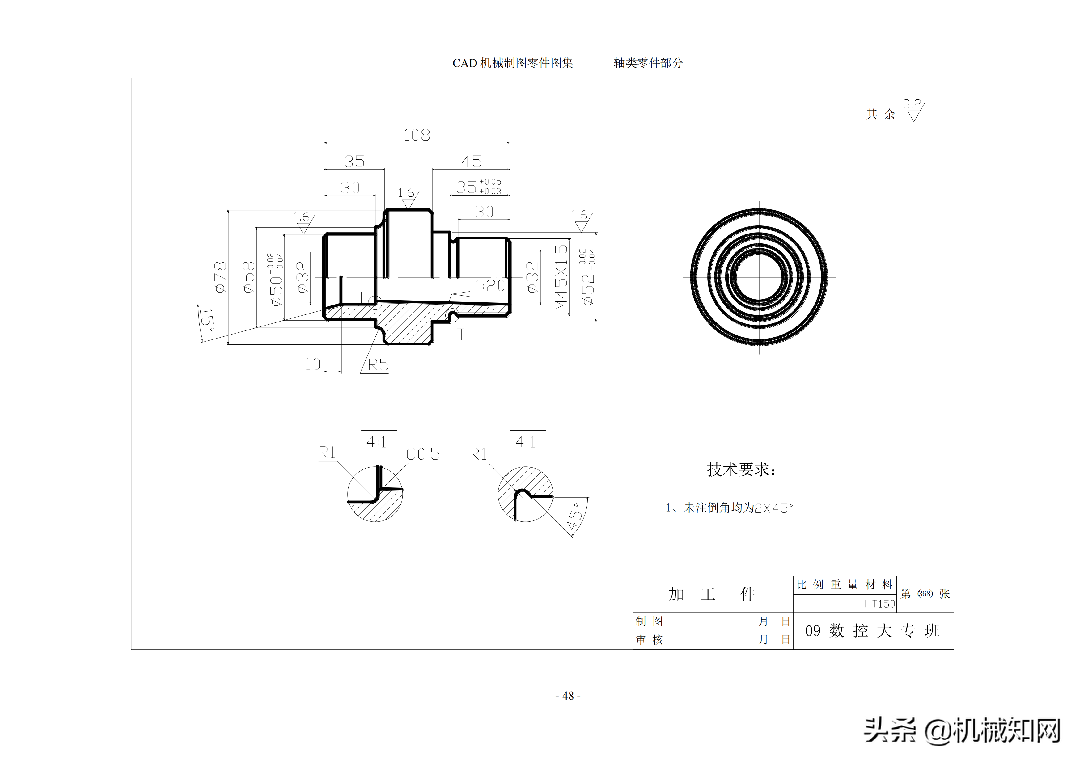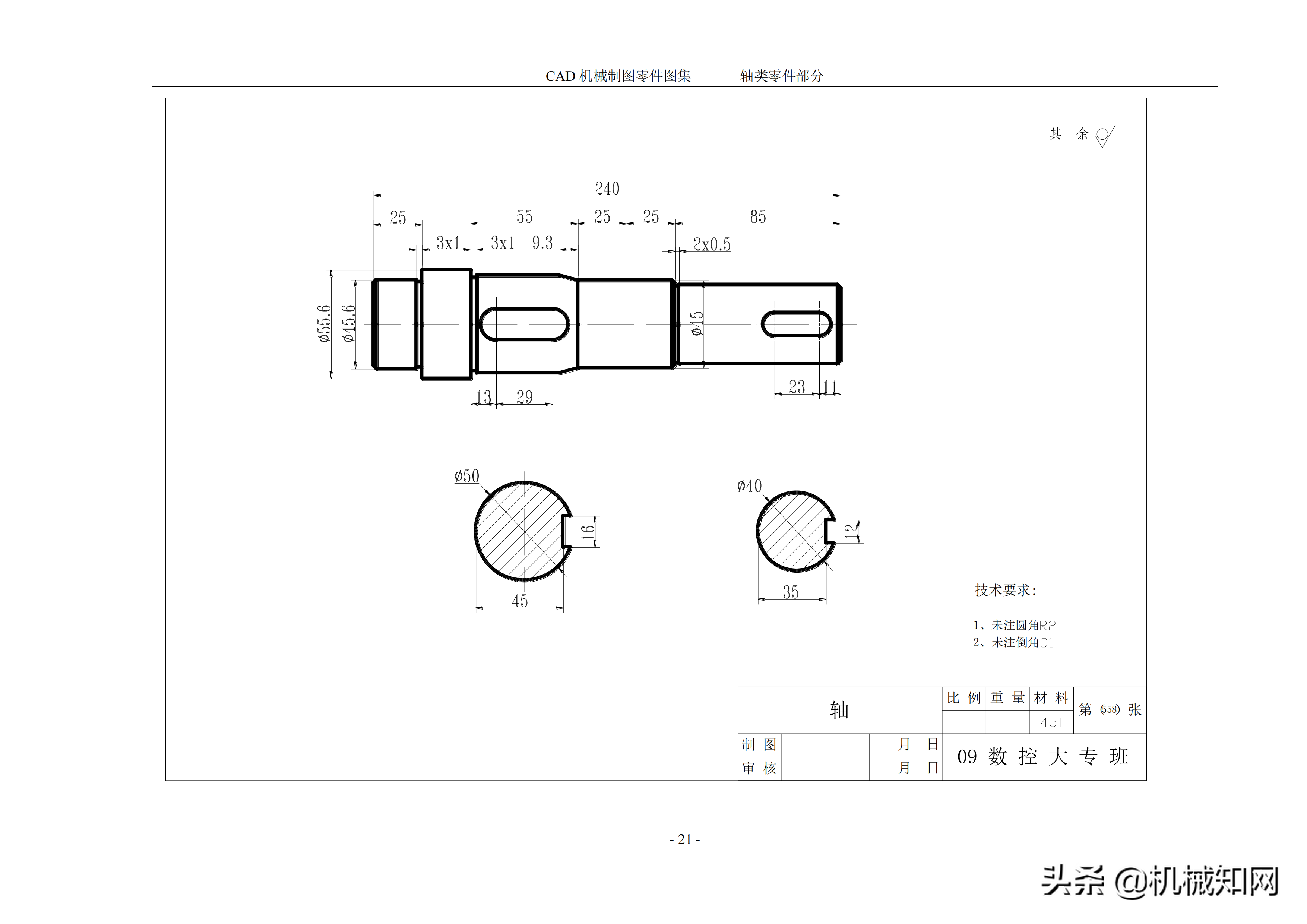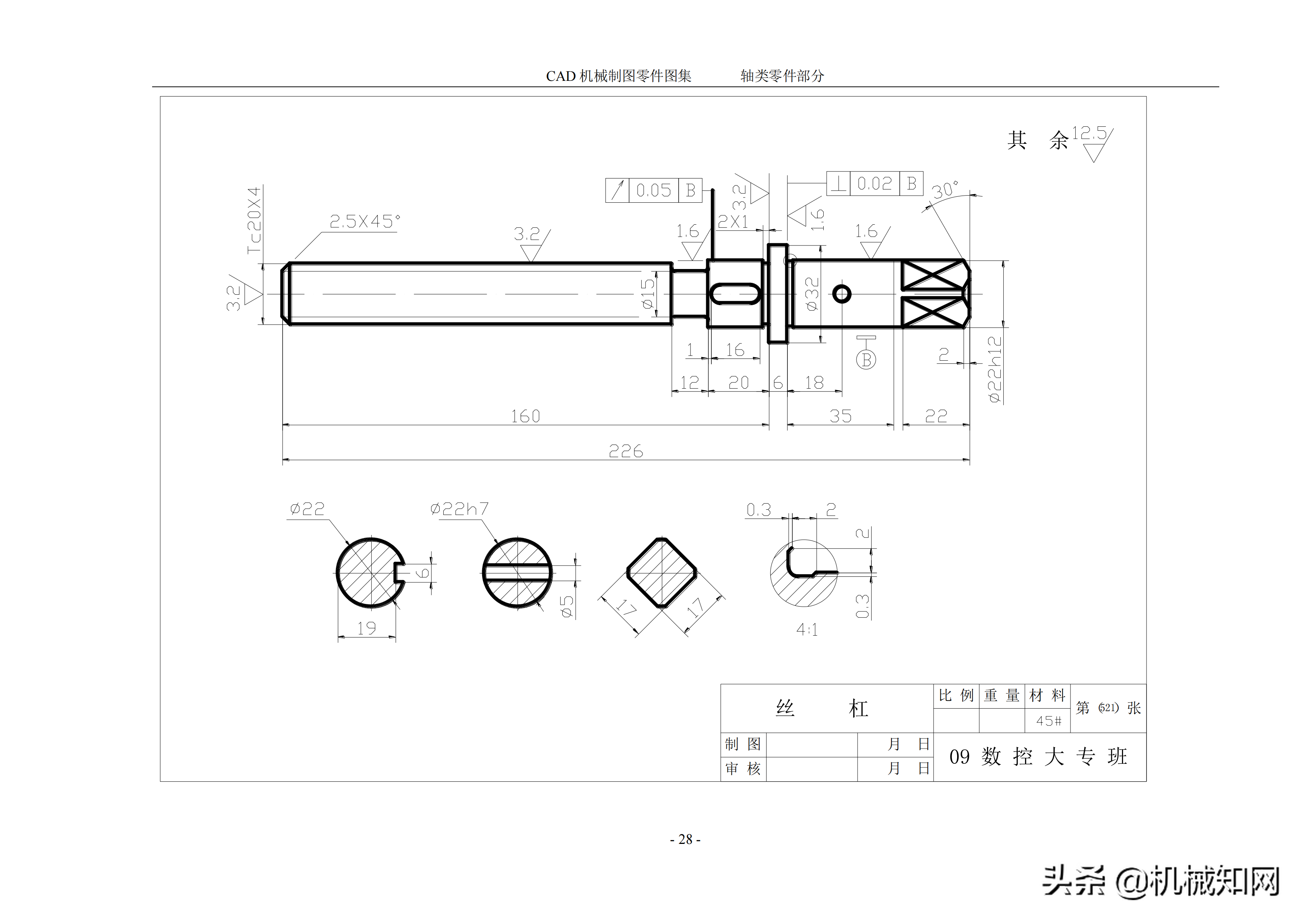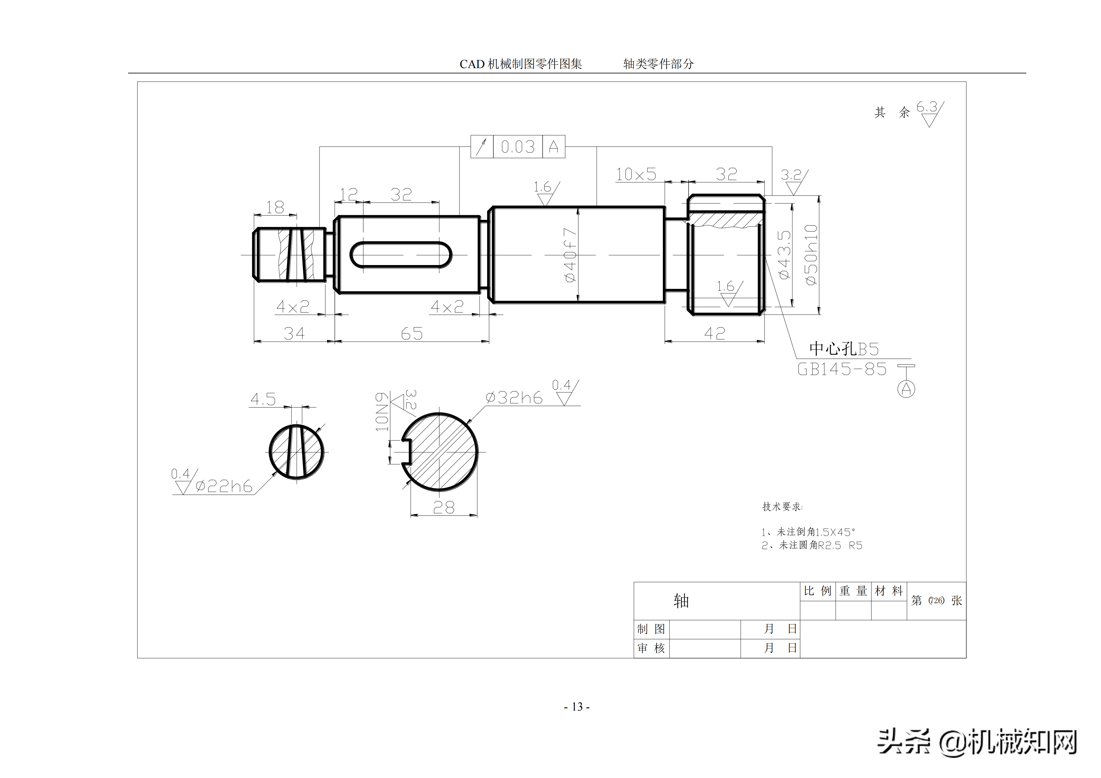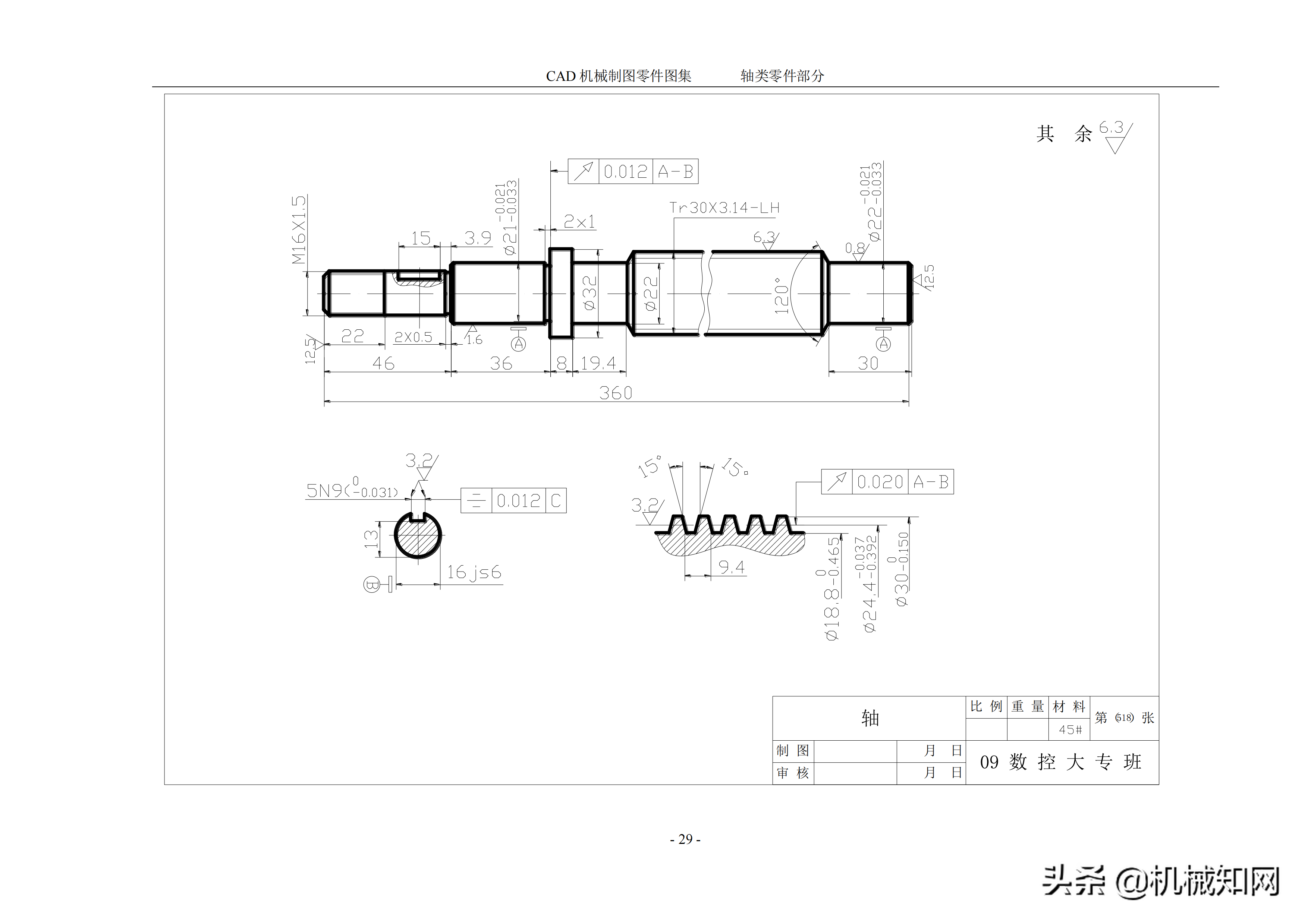 AutoCAD 机械制图零件图集,50个轴类零件案例分享
