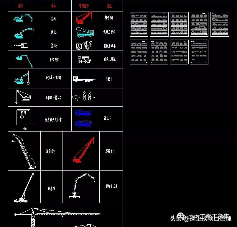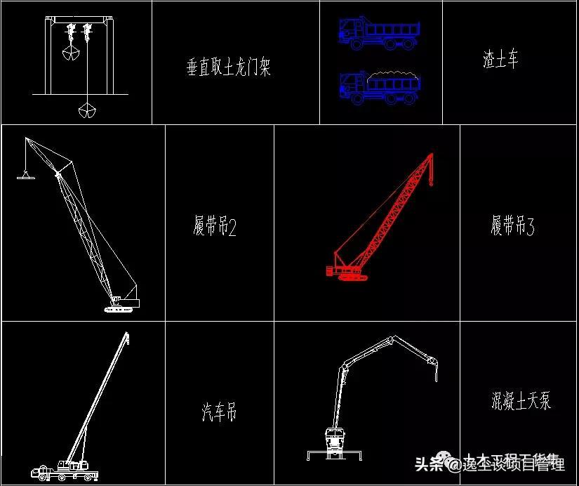 此次分享的资料为:工程常用机械设备CAD图块,含塔吊、挖机、罐车、天泵、履带吊等内容齐全。限时分享7天,手慢无。 文未有获取方式