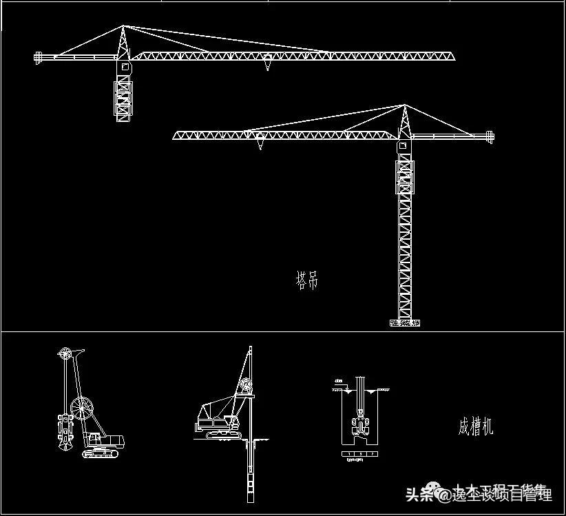 工程常用机械设备CAD图,含挖机、履带吊等,CAD版直接下载