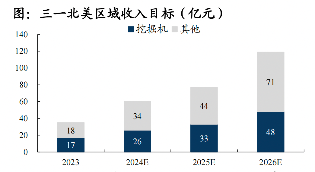深度本土化布局推动三一美国地区收入快速增长。自2012年三一美国第一台本地挖掘机下线起,公司积极贯彻海外本土化布局,所有设计研发均针对美国市场展开,北美收入快速增长。2023年,三一于美国土石方机械销量4600台,实现收入超35亿元。长期来看,我们认为随着三一在美国渠道持续拓展,品牌形象提升,公司销量、收入规模及增速都将有较大幅度的提升。