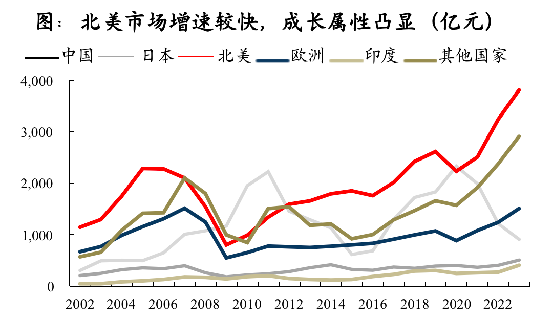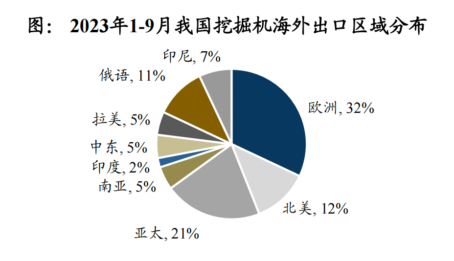 全球最大工程机械市场,成长性+周期性并存。根据Off-Highway研究数据表明,北美工程机械市场为全球最大市场,2023年全球占比超38%。2023年1-9月,中国北美地区出口仅占12%,且多以小型机械为主,而北美主力机型微小挖占比超80%,成长空间较大。