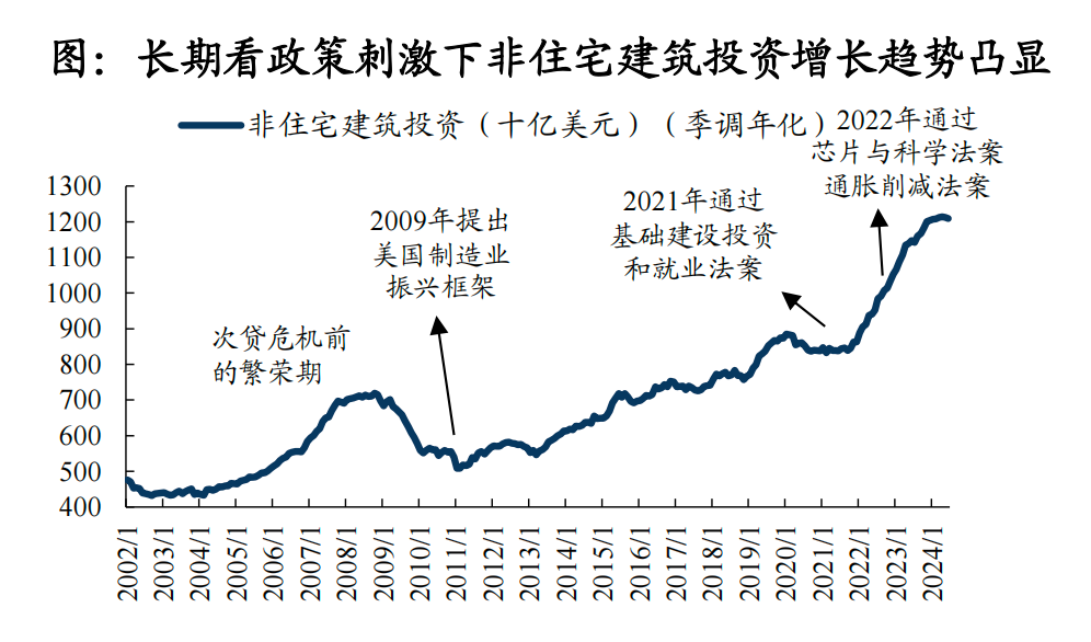 1993年-2005年,新房开工处于高位,推动美国工程机械销量持续增长,次贷危机后进入缓慢修复期。随着2009年起美国政府相继提出“再工业化”“美国优先”“供应链韧性”等战略,制造业回流加速,基建投资和制造业固定资产投资成为工程机械销量的新的支撑因素。