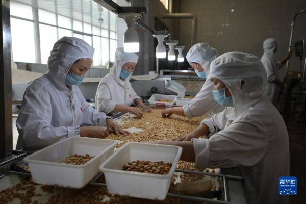 10月21日,在山东省临沂市兰山区一家食品企业车间,工人对花生进行深加工。