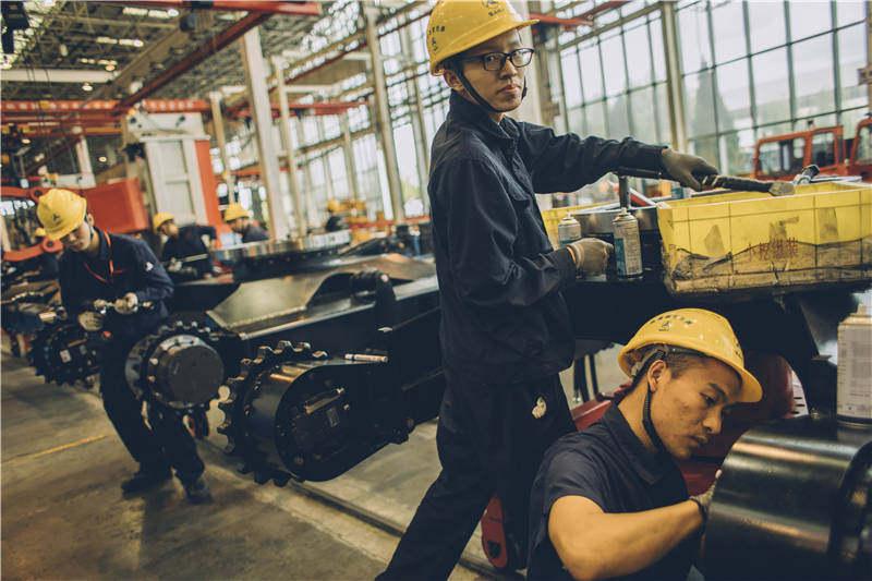“去年年底,每个月生产4000多台小型挖掘机,平均每天生产130多台。这个月的任务则是6500台,每天又要多出100多台。”他记得刚工作时,组装车间里的工人和现在不相上下,那时一天也就生产30多台小型挖掘机。而在生产车间,人数最多、工作最辛苦的焊工面色黝黑,一年四季都套着厚重的防护服。如今,脸上戴着防尘面罩的焊工凤毛麟角,焊接工作已基本被机器取代,组装车间成了工人最多的地方。在这里,曾经两个人才能拉动的2米长的扳手已被机器替换,再细小的螺母也会用电动扳手,工人的动作不是拧,而是按一按开关。