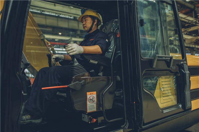 除了偶有“新生”的挖掘机在道路上“蹒跚学步”,卡车不时地将挖掘机运走,乍看上去,工厂却显得空旷而宁静,一眼看不出一座每天能生产200多台小型挖掘机的超级工厂的门道。