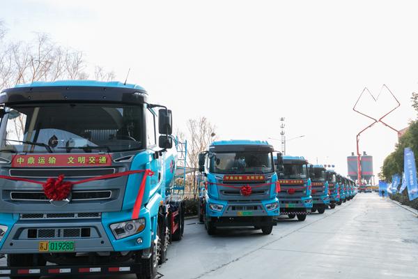 三一&中鼎新能源建材产业园启动仪式暨电动搅拌车交付仪式现场。