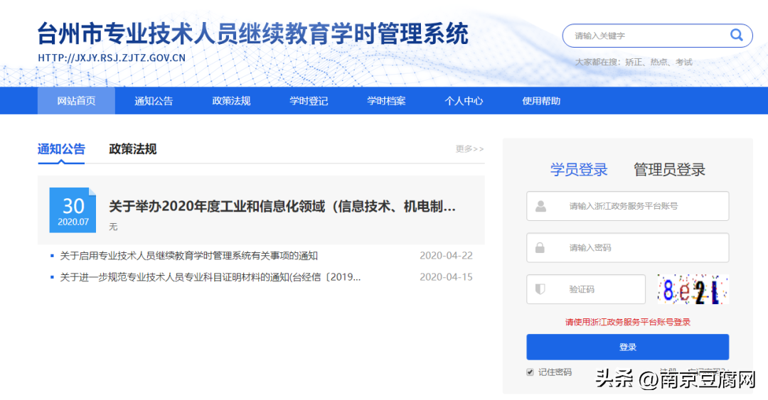 台州市专业技术人员继续教育学时管理系统