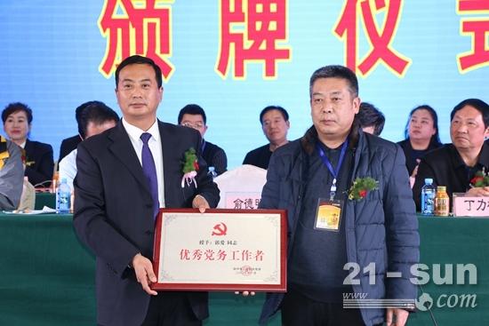 商会党支部书记郭爱为优秀党员颁牌
