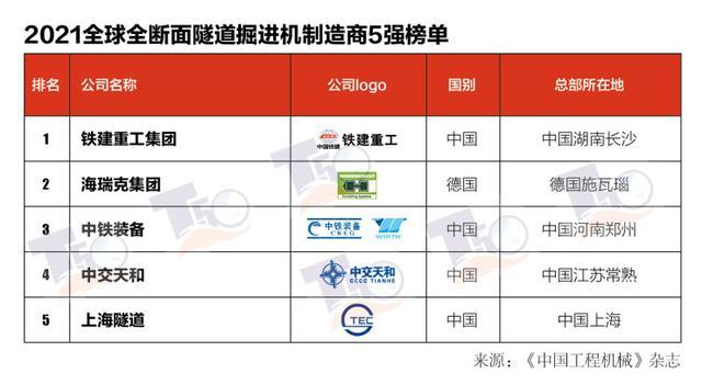 湖南日报·新湖南客户端4月28日讯(记者 曹娴 通讯员 胡清)今天,“2021全球工程机械制造商50强”榜单在北京发布,湖南4家企业上榜。同时发布的“2021全球全断面隧道掘进机制造商5强”榜单中,铁建重工排名榜首,企业营业利润率居全球第一。
