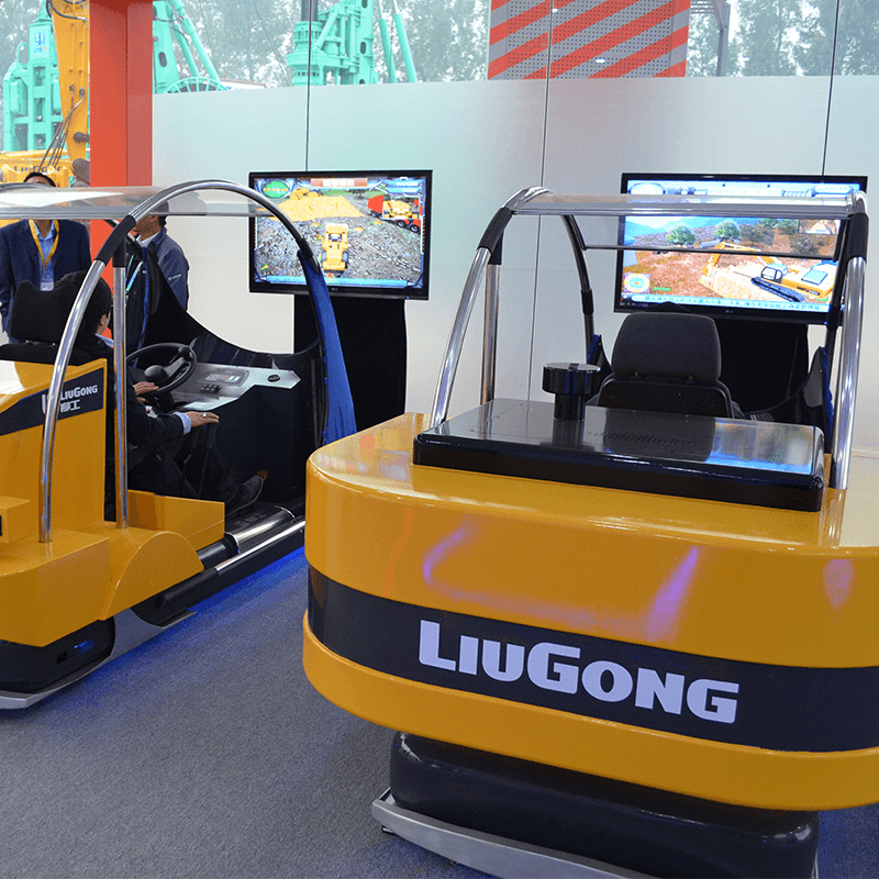 按照柳工的外观需求,采用我公司自主研发的挖掘机、装载机叉车二合一模拟软件制造的模拟机设备。
