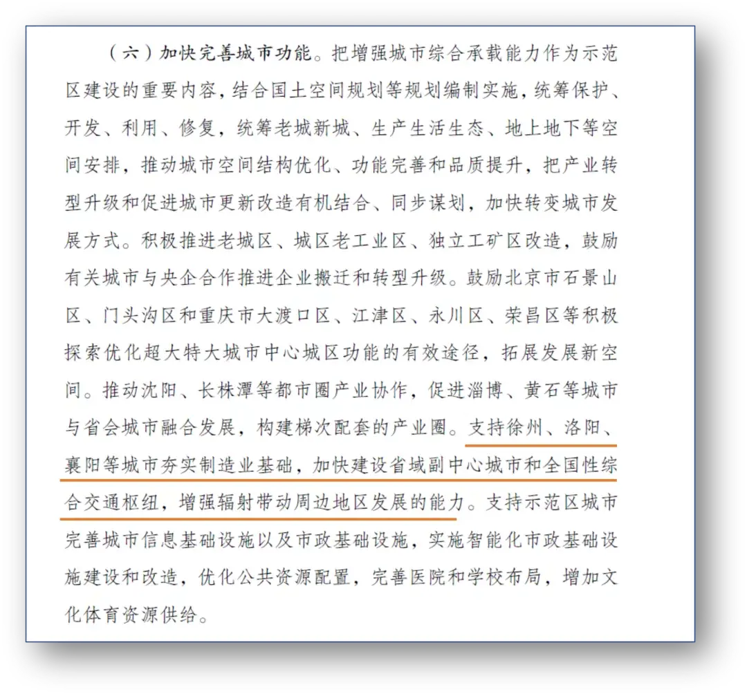 更关键的是,该文件还着重提及了3个省域副中心城市:徐州、洛阳、襄阳。