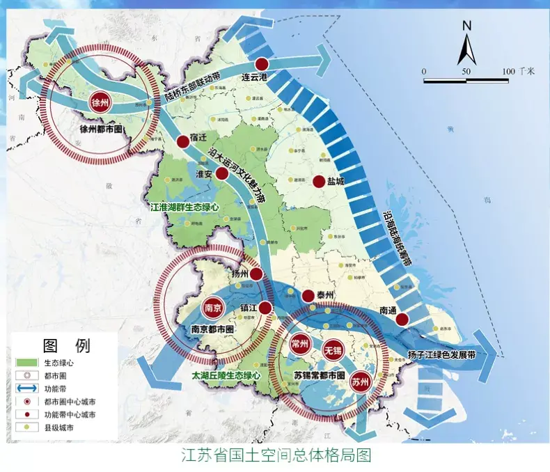 同时,江苏规划了三大都市圈,分别是横跨苏皖两省的南京都市圈、与上海深度融合的苏锡常都市圈,以及着眼于淮海经济区的徐州都市圈。