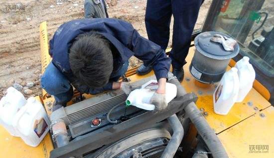 你的挖掘机加防冻液吗?还是直接加水?