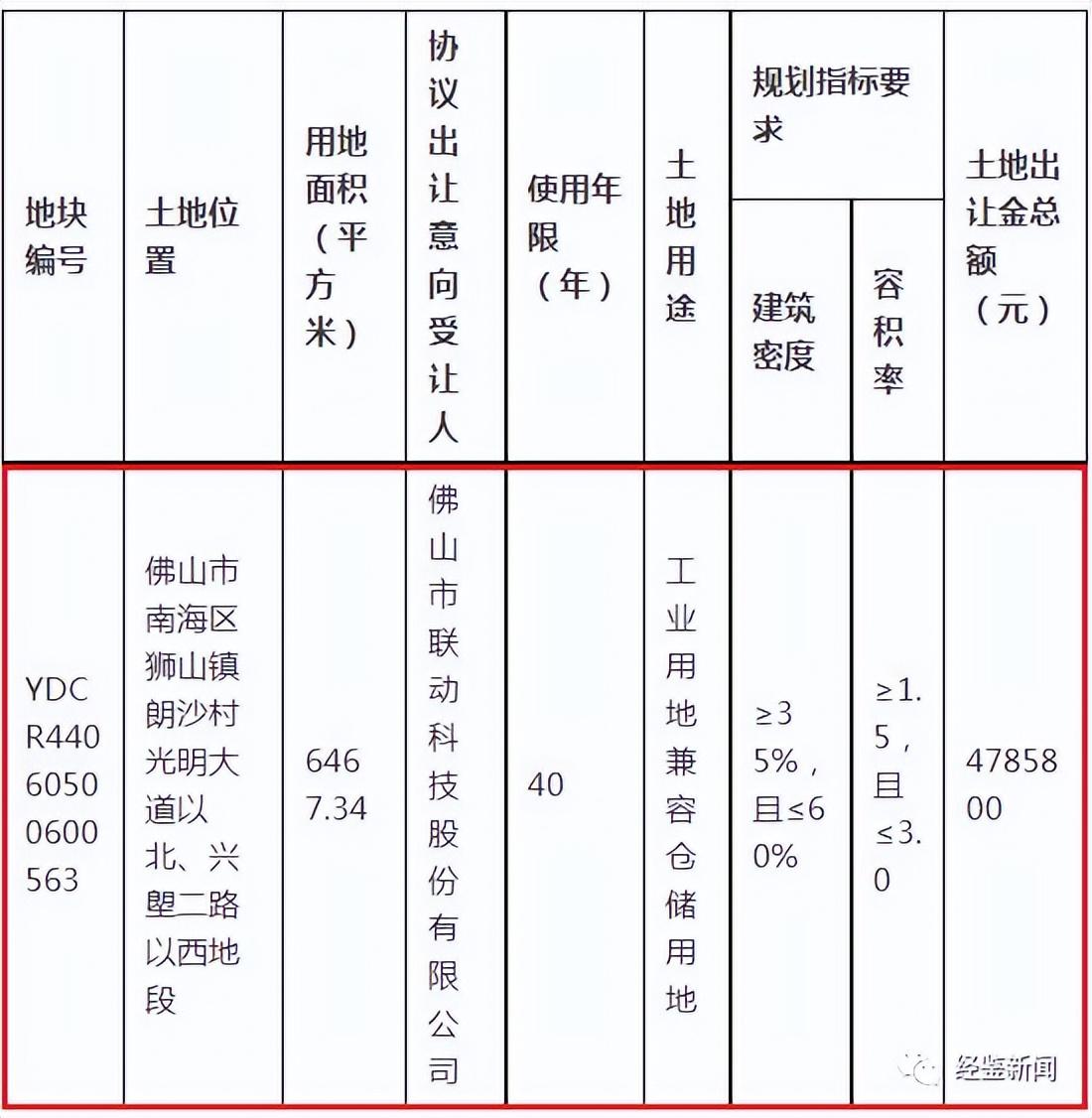 但据佛山市自然资源局南海分局公示显示,该块土地出让金为478.58万元。