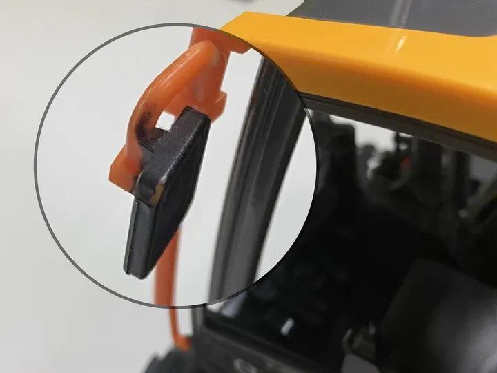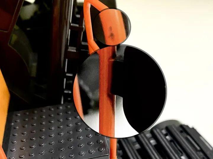 整体做工没有大瑕疵,只有两个小部位存在染色不均,不影响整体美观。驾驶舱没有窗户,门和内部操作台都是固定的,还原度有限,不过并不影响遥控挖掘机的核心玩点。