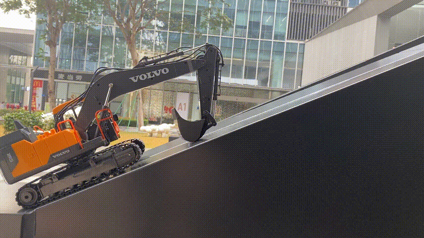 挖掘机的履带相当“给力”,采用了加厚橡胶材质和加深纹路设计,在瓷砖、水泥地、地毯和沙地等都能行驶。抓地力强,较陡斜面也能自如行走。