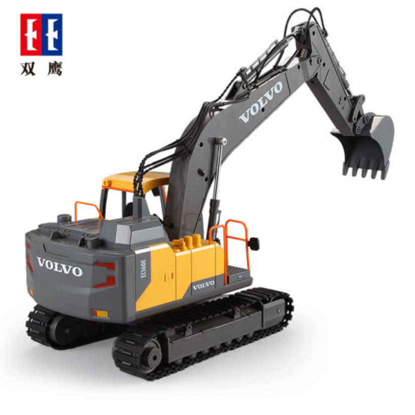双鹰获得挖掘机品牌沃尔沃正版授权,推出这款遥控挖掘机玩具,造型根据实物以1:16比例还原。整车以塑料和合金材质为主,拿在手里很有分量,在瓷砖、水泥等多种地面都能灵活行驶。