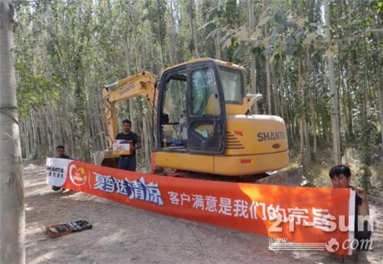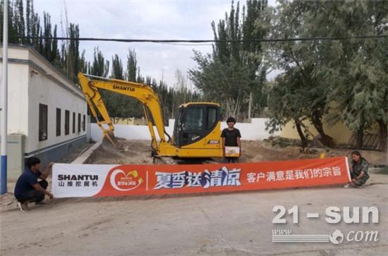 同时,山推挖掘机“夏季送清凉”活动在喀什地区的麦盖提、岳普湖展开。麦盖提的永盛公司、岳普湖的新岳公司各有一台山推SE245LC-9A用于工程施工,客户表示:“山推245速度快,省油,再有需求,一定会再次选择山推!”