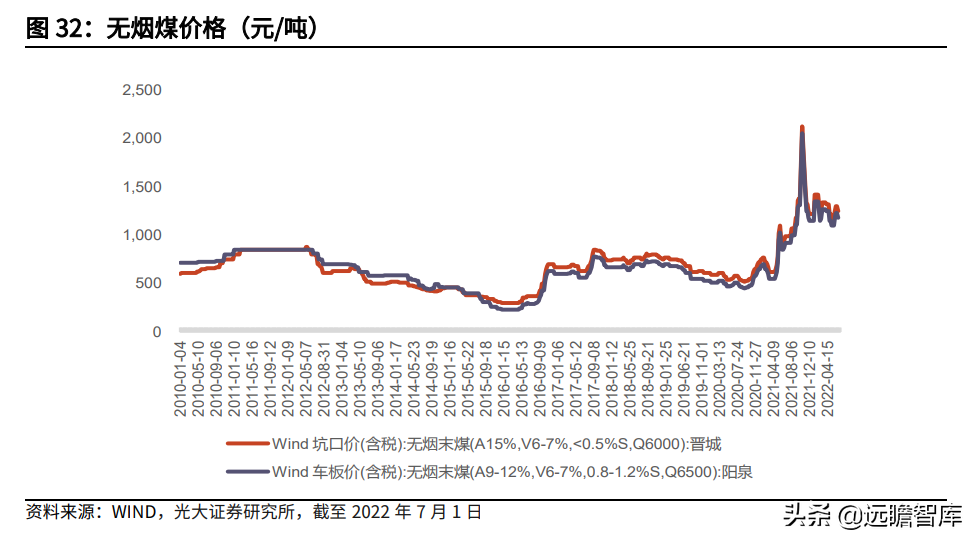 根据公司 2021 年报披露,公司主要煤品种价格为洗末煤 569.2 元/吨;洗 块煤 919.8 元/吨;洗粉煤 1076.2 元/吨;煤泥 277.2 元/吨。根据前文分析,末煤对应的电厂“迎峰度夏”主动补库需求依然强烈,当前无烟煤价格仍高于去年同期,Q3 是传统旺季叠加疫情结束后部分需求的延后释放,高位煤价仍可得到 支撑。