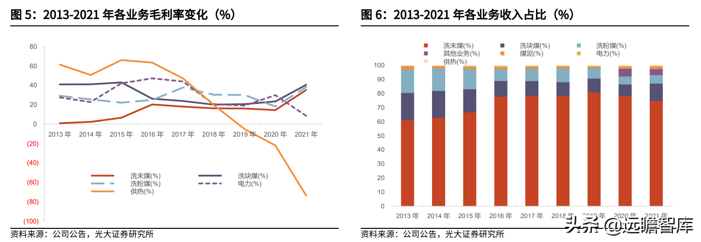 2021 年公司洗块煤贡献 12.27%的销售收入,毛利率为 40.58%;洗粉煤销售收入占比为 5.97%,毛利率为 38.23%;洗末煤贡献销售收入 75.08%,毛利率为 35.25%。